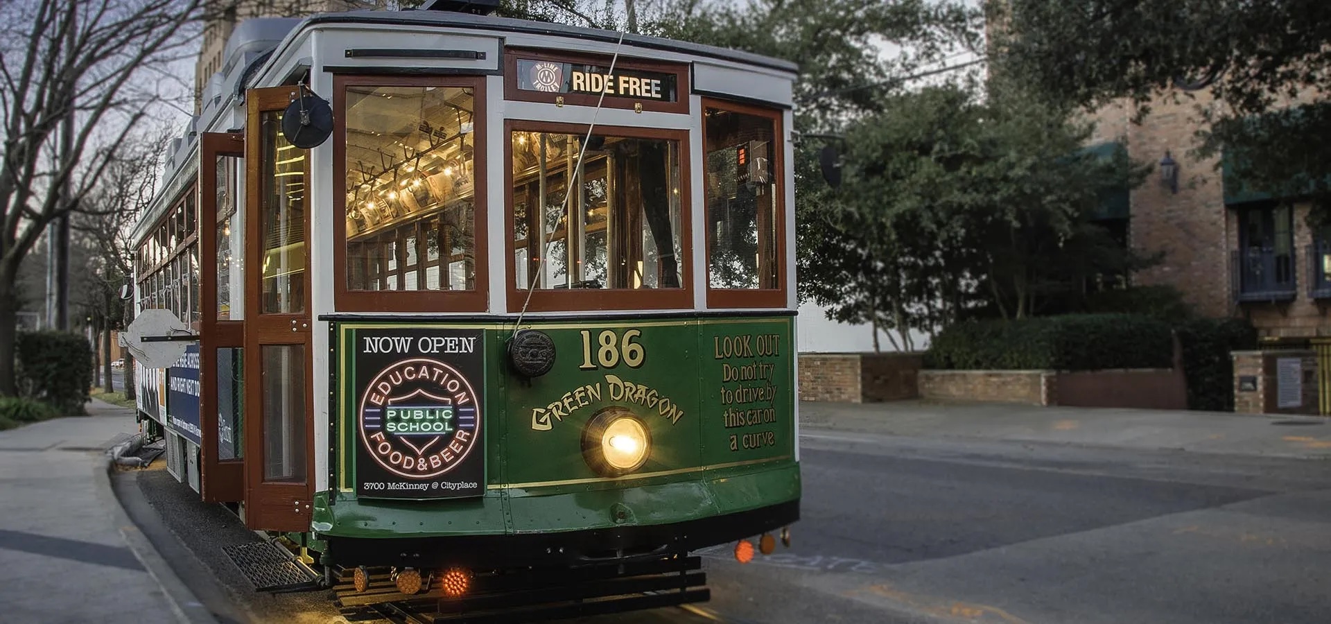 Hop on the McKinney Avenue Trolley that takes you through Downtown, The Dallas Arts District and Uptown. Look for the “M-Line” maroon sign that’s located at all the stops along the route, and track the trolley to see when its near.